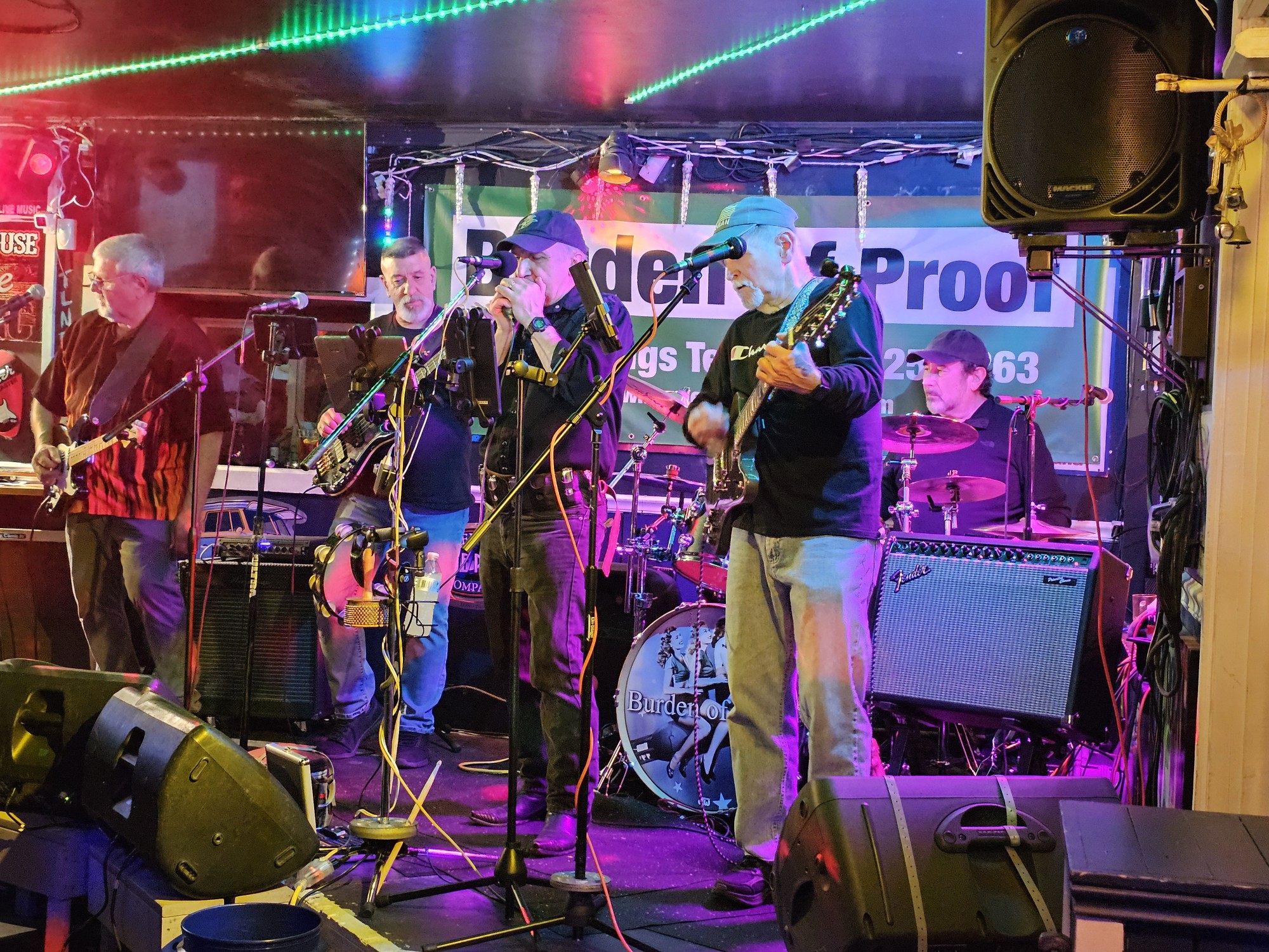 Burden of Proof Band (“B.O.P.”) members have decades of experience playing with other bands in a variety of venues. They’re all multi-talented — in musicianship, singing, songwriting — in many music venues. They got together to combine talents for fun and now specialize in performing an eclectic mix of Classic Rock, Blues, R&B, Country, and Folk. The band is versatile and adjusts to the venue in which they perform.